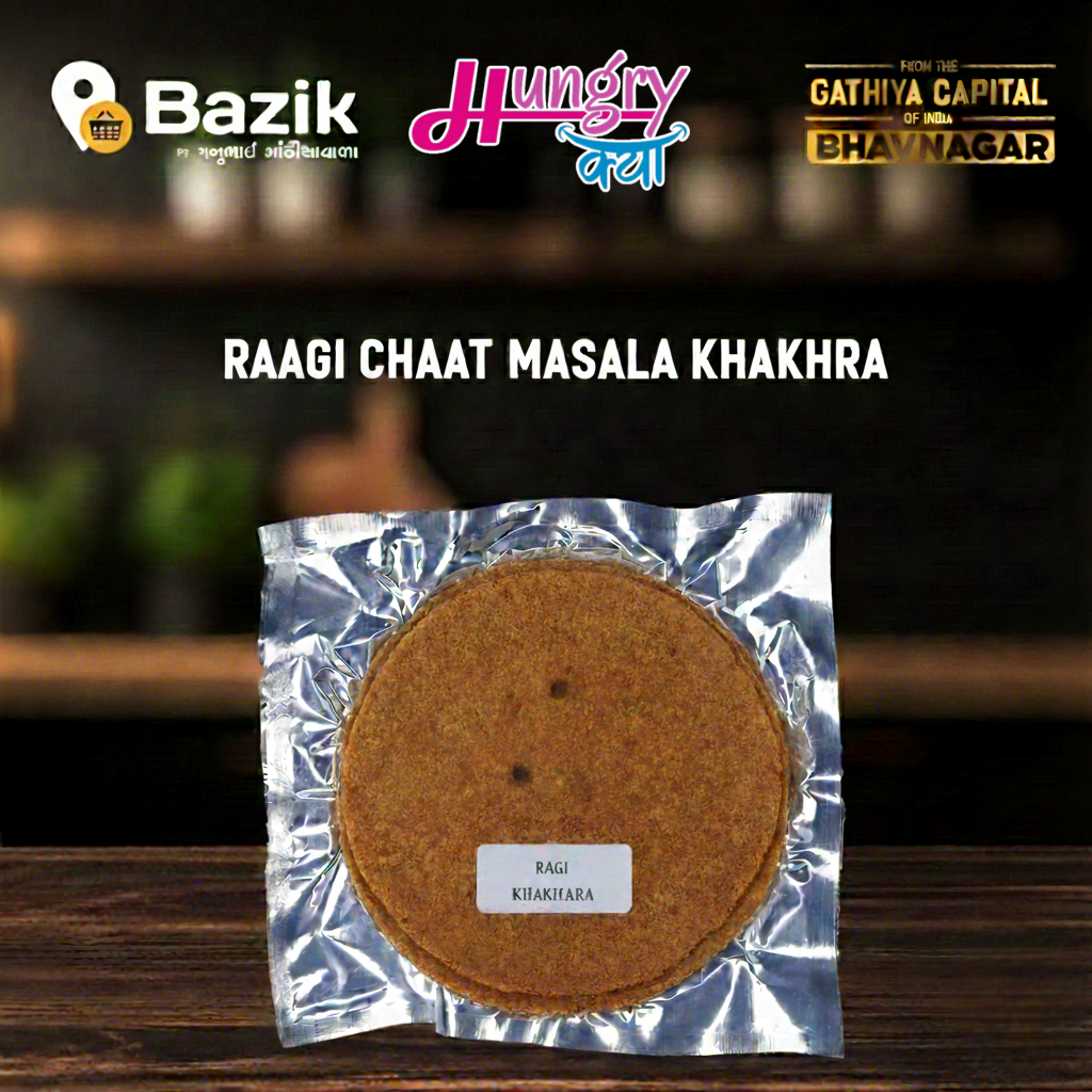 Lightly spiced and slow-roasted, this khakhra offers a wholesome, earthy taste along with the natural health benefits of ragi — making it perfect for everyday healthy snacking.